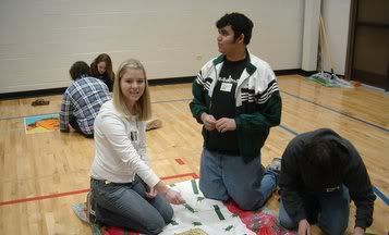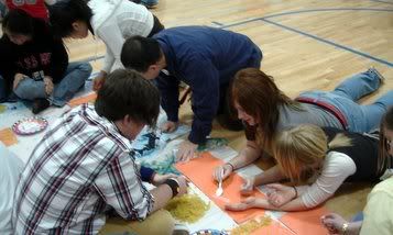 When youth arrived at the Corps that evening they randomly chose a small group which determined what World-group (1st, 2nd or 3rd) they represented during the project. The smallest group represented the 1st World; they got to sleep on cots in a smaller, warmer room. We had two 2nd World small groups who slept on chairs. The largest group of kids represented the 3rd World; they slept on the floor.